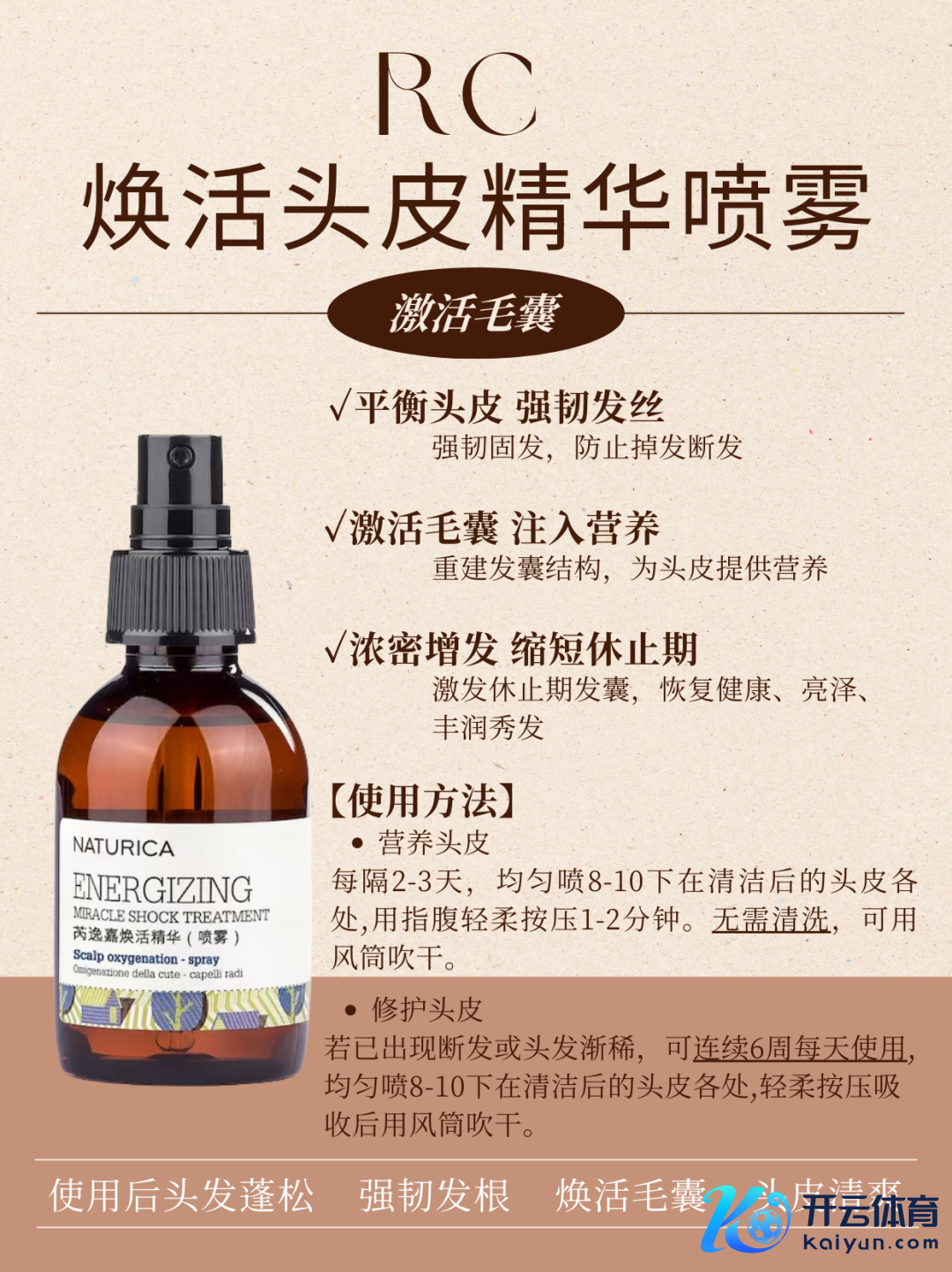 RICA头皮喷雾,不管是你的细软塌,如故油头,干睥,易脱发,齐可闭眼入。激活毛囊,让头发嘭弹起来,刺激重生发孕育。