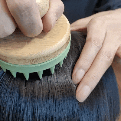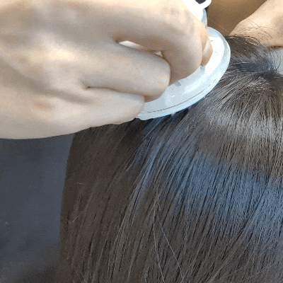 均匀不错涂抹在头皮,推拿梳一边推拿头皮,一边在头皮名义导入液体