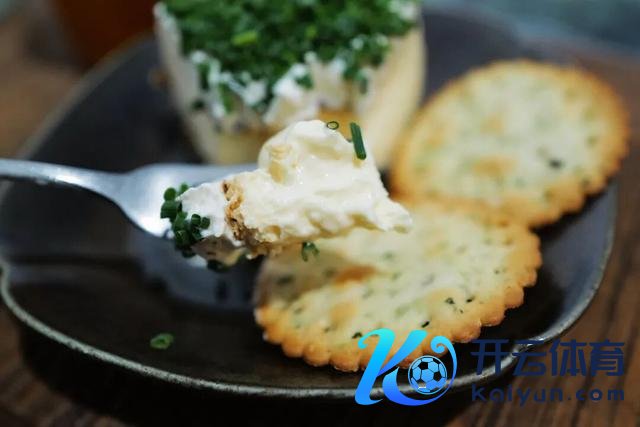 蛋糕体部分是孔泰芝士和蒜香奶酪,奶味甘醇,流心质料,进口相称顺滑。可以搭配香葱饼干沿途吃,口感交融得很好。