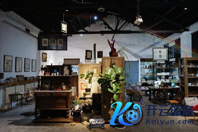 多样颜面的产品,中古的储藏柜、看不出年代的油画、莫得一把换取的椅子……十足是一个被绿植包裹的梦核空间。